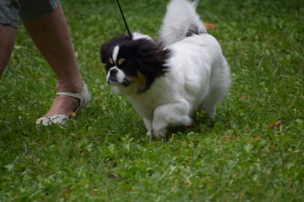 Exc crâne, oreilles bien placées, exc stop, ?il bonne forme et couleur, denture correcte, ligne de dessus tendue, bonne forme de côtes, exc épaules et avant main, bonne angulation, arrière, pied de lièvre, exc fourrure, exc mouvement avant, correctes à l?arrière.